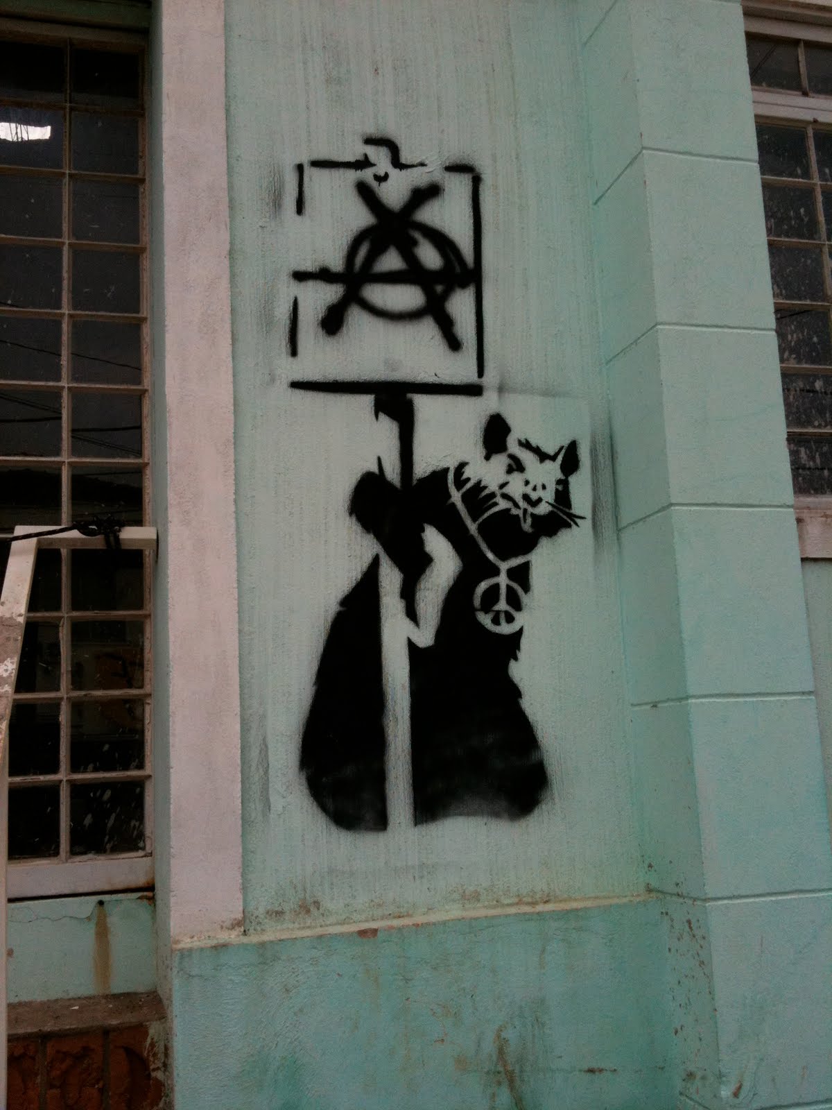 Banksy em Ribeirão? A intenção é legal, mas copiar o mais cool de todos os tempos? O genérico em uma casa abandonada, faz parte da série Rats, do inglês Banksy– provocativo, ele usa em sua maioria stêncil para criar obras impactantes nas ruas da velha Inglaterra. Aqui tb vi um Hitler de xuquinha, mas não lembro onde estava pra fotografar.A arte dessas toygirlz, sempre me faz sorrir. Adoro o estilo dos desenhos. Quem descobrir quem faz, por favor me avisa!Aqui tem também uma árvore nojenta, mas com uma estética bem interessante, que todos conhecem na cidade, que é a árvore de chiclete, que fica ao lado de uma escola pública. Um dia um moleque resolveu grudar um chiclete na árvore, outro moleque viu e grudou outro chiclete. Disse para os amigos que grudaram chicletes também. Como um marketing viral, a “moda” se espalhou e hoje o resultado, é esse.Árvore de chiclete no centro de Ribeirão: fotos de Marcelo Coelho via Blog de Guerrilha.