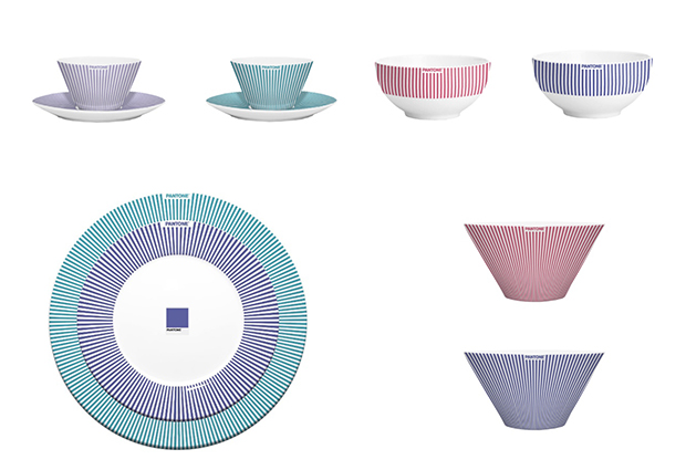 Para comemorar a abertura da Pantone Lifestyle Gallery em Hong Kong, a empresa lançou uma coleção de louças edição limitada com um design minimalista. Composta por um conjunto de xícaras de café, pratos e tigelas no estilo “riscas de giz”, as peças são vendidas em quatro opções de cores: vermelho, verde e dois tons de azul.