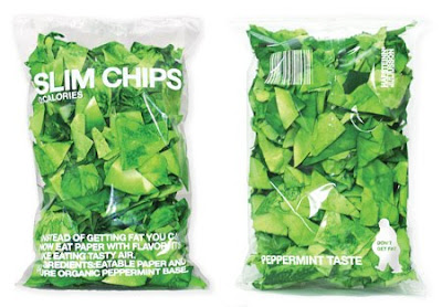 Chamados de Slim Chips, esses snacks são feitos de papel comestível com sabores e cores orgânicas de peppermint, blueberry and sweet potato. A ideia foi apresentada na semana passada em Milão pelo designer Hafsteinn Juliusson. O melhor: eles não possuem calorias! rsrs.
