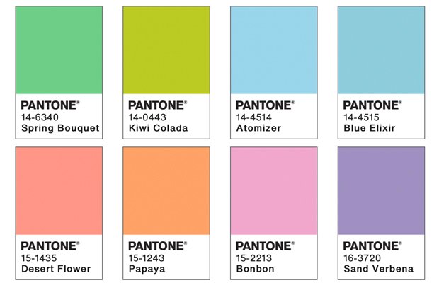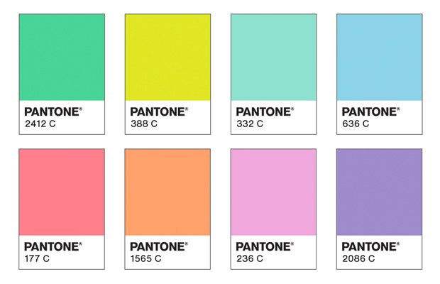 Abaixo, a paleta elétrica para o design gráfico, segundo a Pantone.