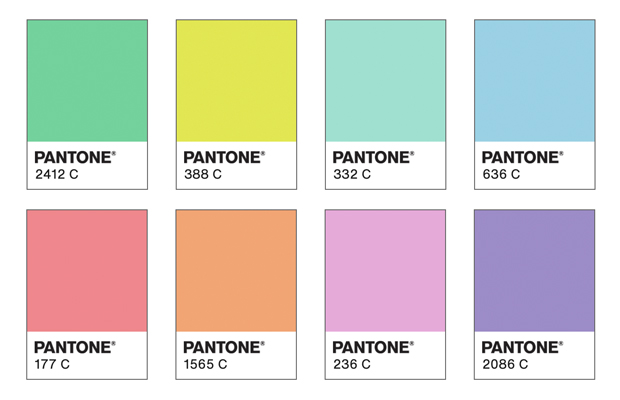 Abaixo, a paleta elétrica para o design gráfico, segundo a Pantone.