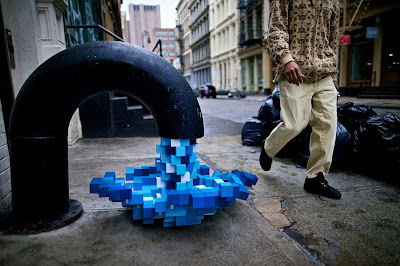 Nas ruas de Nova York, uma obra agora em versão 2.0, pixelizada, nos lembra muito o que a artista Kelly Goeller havia feito em 2008 (imagem acima). Pela semelhança, tudo nos faz pensar que tenha sido a mesma pessoa, mas por enquanto, são especulações. Legal, não? ![]()