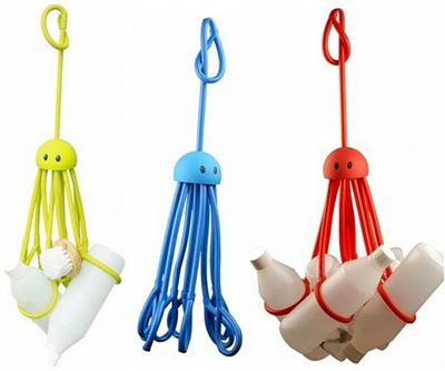 Olha que legal esses polvos para organizar frascos de shampoo, escovas, esponjas, etc, no box do chuveiro! O “Octopus” possui tentáculos de PVC que mantêm tudo pendurado e à mão na hora do banho. Em 4 cores, eles divertem qualquer banheiro!