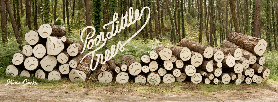 >Instalação de Steven Burke na França, a “Poor little trees” me chamou atenção por ser tão simples e ter um sentido tão real. Feita de acrílico com madeira. Atualmente não existe mais no local.