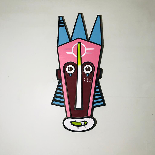Ultimamente ele tem criado trabalhos bem legais. No Instagram do Estúdio Fissura, em que faz parte, Edgar compartilha suas obras e a de outros colegas que também tem feito experiências com materiais diferentes como têxtil, cerâmica, etc. Entre suas mais recentes peças estão móveis feitos de papelão, como por exemplo, uma estante e mesinhas de cabeceira, além de suas esculturas estilo Old School, geométricas, cheias de simbolismos místicos e religiosos, e outras com traços mais simples que você confere abaixo: