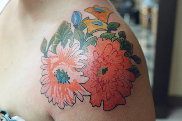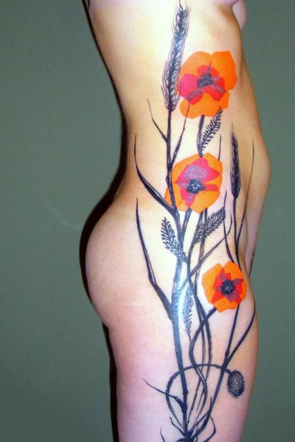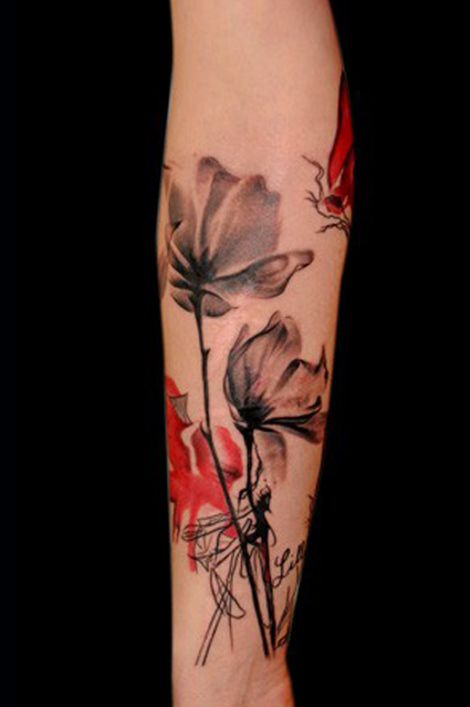 Flores em Raio-X: a delicada arte azul de Pokhy na pele