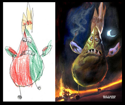 E se alguém pegasse alguns desenhos feitos a mão e os finalizassem? Dave Devries pensou e assim fez: adicionou um toque “profissional” aos desenhos de monstros feitos por crianças. Pois é, olha que legal. O mais legal é que isso se tornou um livro, o The Monster Engine, de sua autoria.