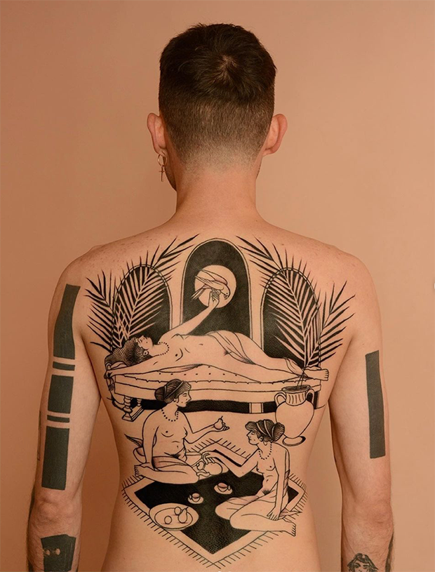 Yonatan Dagan intercala traços do mais grosso ao mais fino em suas tattoos e faz uso do espaço negativo do corpo, indo de inspirações mais pop até mais tradicionais. Confira: