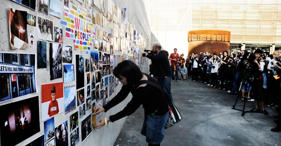 Um projeto de arte colaborativa que convida as pessoas a criar e se divertir um “flickr ao vivo” em um local determinado da cidade, com a intenção de montar uma obra, feita por todos: WallPeople, movimento criado por 2 publicitários espanhóis, David Marcos e Pablo Quijano.