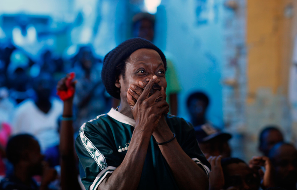 A reação do homem no jogo entre Argentina e Nigeria. (Haiti)