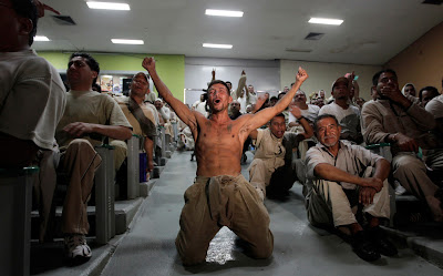 Presos mexicanos assistem a partida contra a África do Sul. Cadeia de Reclusorio Sur, Cidade do México.