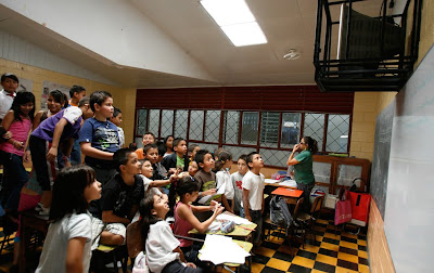 Crianças da Costa Rica assistem a partida entre África do Sul e México. O ministro da educação do país, Leonardo Garnier, autorizou todas as escolas da Costa Rica a terem uma TV na sala durante a Copa para assistirem aos jogos.