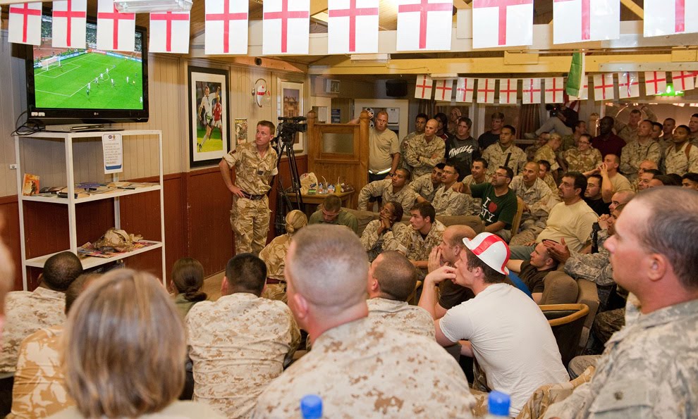 A tropa americana e a britânica assistem a partida entre Estados Unidos e Inglaterra. (Afeganistão)